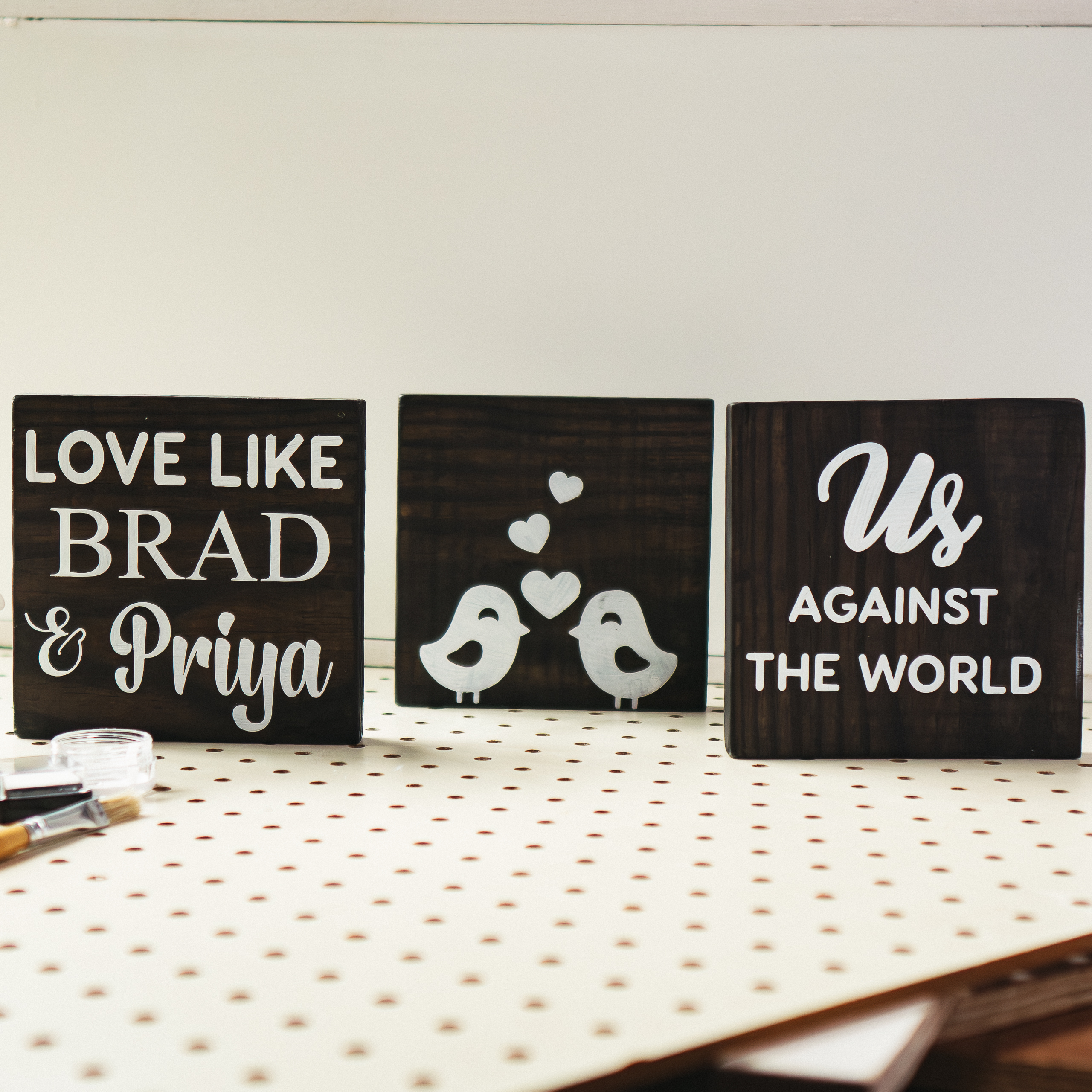 Pick your words. Pick your stain. Build it together — and end the night with something made to last.